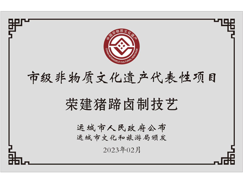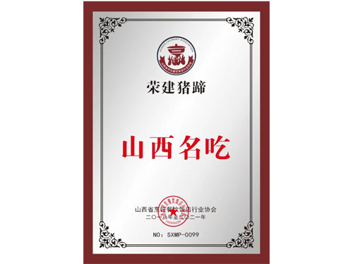 介氏餐饮品牌“荣建猪蹄”初始于1998年,由介子推寒食节忠孝文化第103代传承人介荣建创立。原名荣建面餐馆,以农家菜和面食为主,因特色菜--卤水猪蹄口味独特,营养价值高,老少皆宜而深受广大食客的喜爱,每天慕名而来的食客络绎不绝,为方便各地食客寻找,于2005年5月更名为“荣建猪蹄”店,同年10月成功注册。因良好的口碑和消费者的认可,“荣建猪蹄”因此成为夏县的一道名吃。
